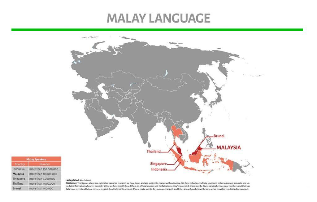 As Bahasa Malaysia is similar to Bahasa Indonesian, there are occasionally cases where local Indonesian translators translate Bahasa Malaysia as well. Of course, their translation is not completely wrong, but there is a clear difference between the two languages. Therefore, a local translator who speaks Bahasa Indonesian should translate Bahasa Indonesian, and a local translator who speaks Bahasa Malaysia should translate Bahasa Malaysia. 1-StopMedia has many years of Bahasa Malaysia translation experience and has a large pool of local Bahasa Malaysia translators with ample translation experience and excellent quality.