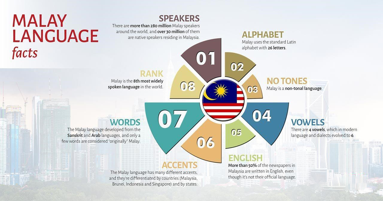 - Agglutinative language: Agglutinative language: Since Malay was the official language for trade, it has the simplest grammar among Austronesian languages. In addition to the simplicity of grammar, as a communication language, the phonological structure is simple, the written characters are Latin characters, and the grammar (e.g., affixes) is not strictly followed in elementary and intermediate conversations. However, since Malay is an agglutinative language, as it goes to a more advanced level, it presents more difficult grammatical elements (such as suffixes, suffixes, etc.), which are essential to speak like a native speaker. To make a good sentence in Malay, it is necessary to perfectly reflect these grammatical elements in translation.